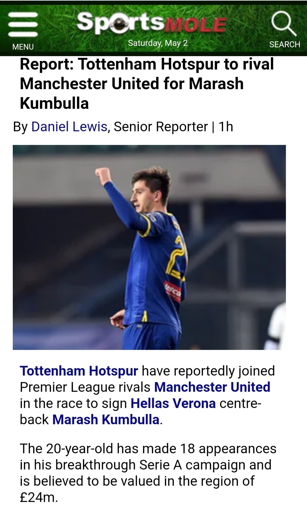 Tottenham have made contact with hellas verona over a potential transfer for defender marash kumbulla according to reports. The albanian centre back has been in demand this summer with both chelsea and manchester. Tottenham hotspur should look to replace jan vertonghen with verona centre back marash kumbulla. Tottenham transfer rumours latest tottenham transfer rumours.